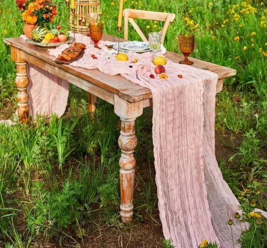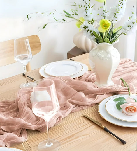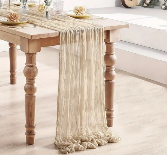 Doğadan ilham alan bu zarif runner, %100 pamuklu dokusuyla hem çevreye duyarlı hem de estetik bir tercih sunar. Sofranıza sade bir şıklık ve doğal bir dokunuş katmak için tasarlandı.