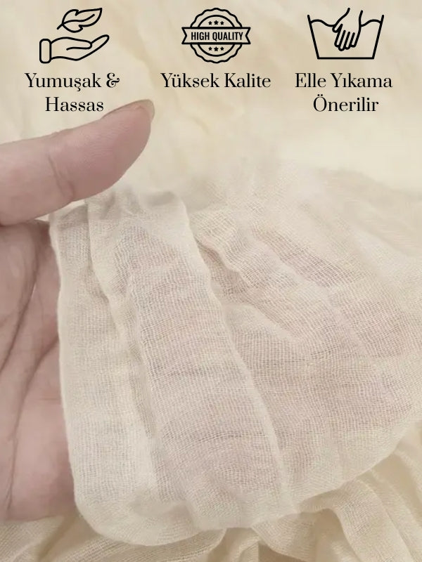 %100 Pamuklu Bohem Masa Örtüsü Dekoratif Runner Bej