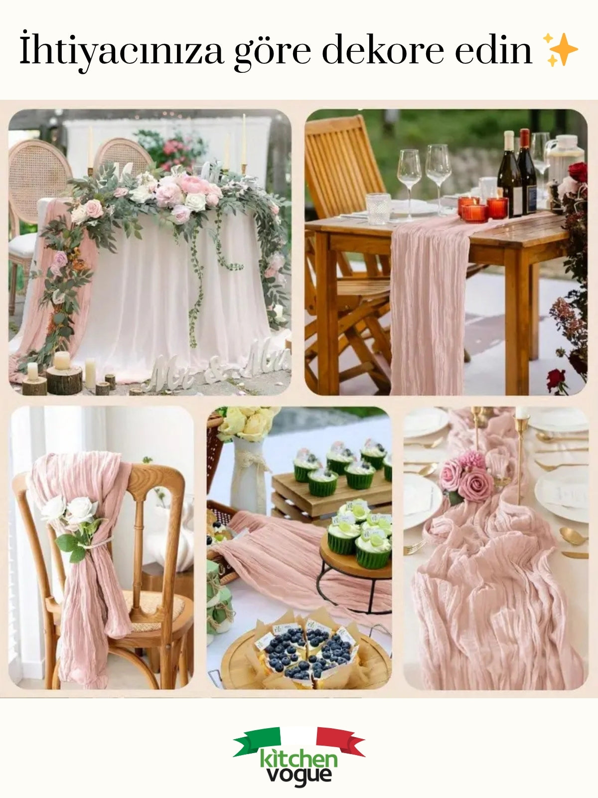 %100 Pamuklu Bohem Masa Örtüsü Dekoratif Runner Pembe