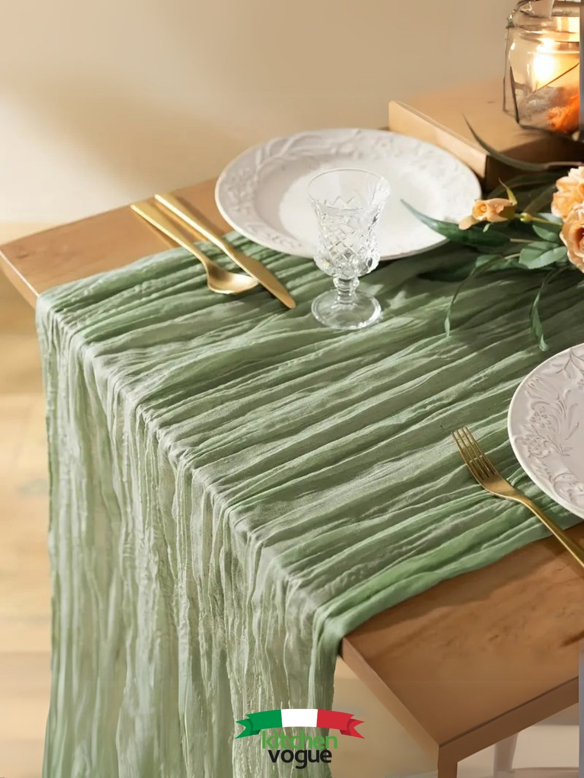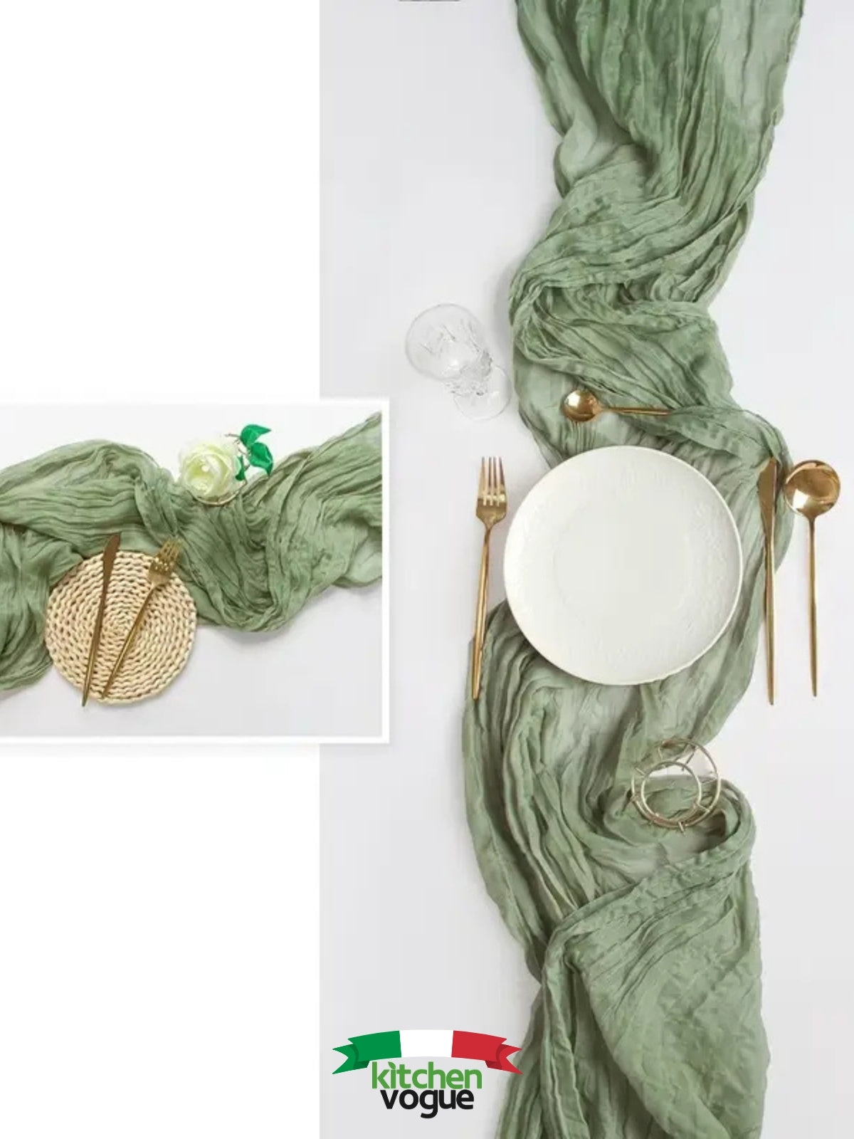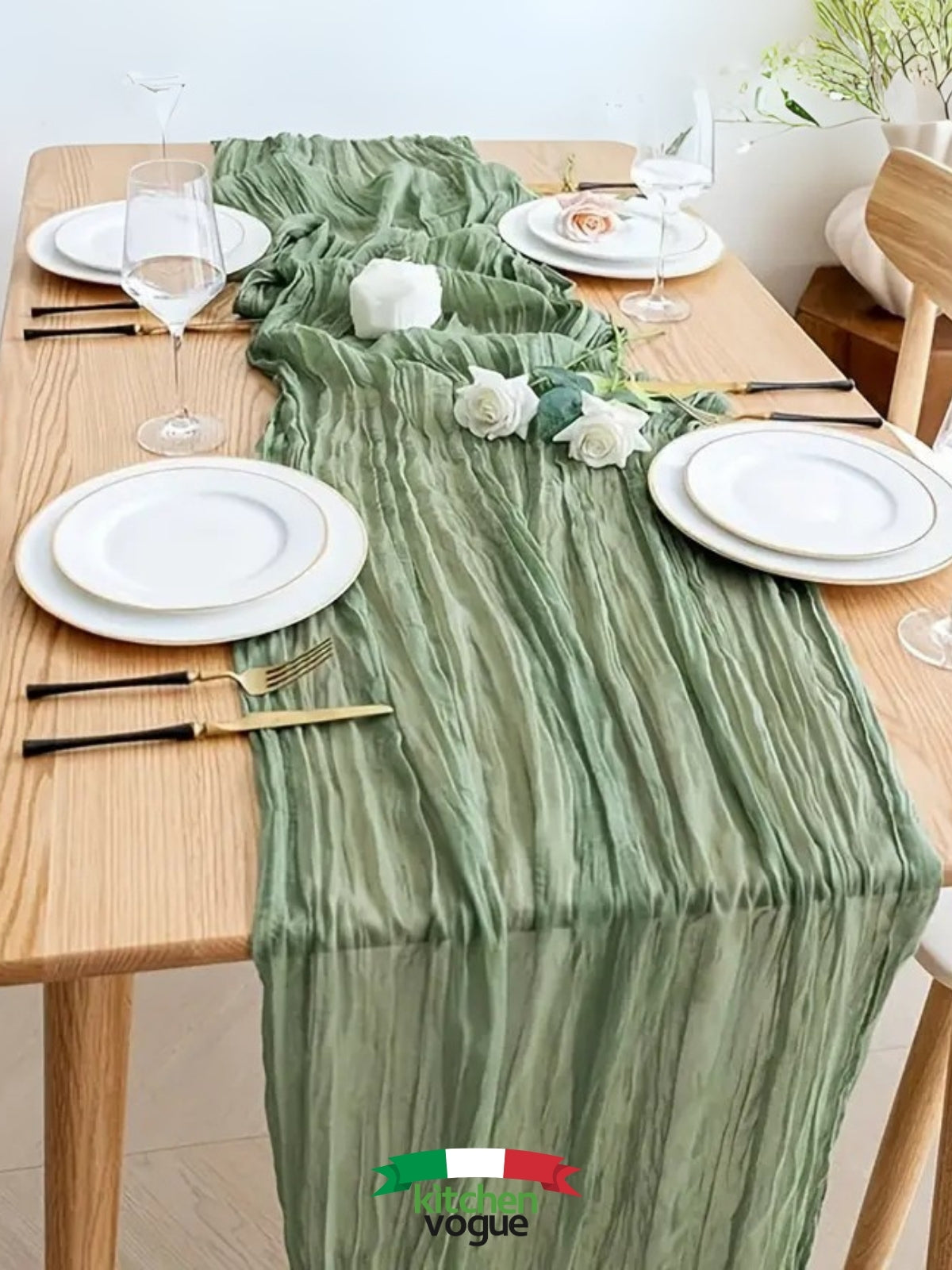 %100 Pamuklu Bohem Masa Örtüsü Dekoratif Runner Beyaz Adaçayı Yeşili