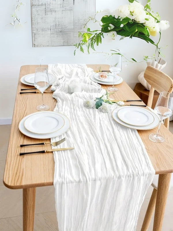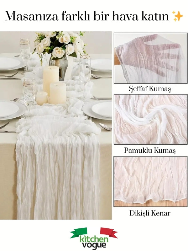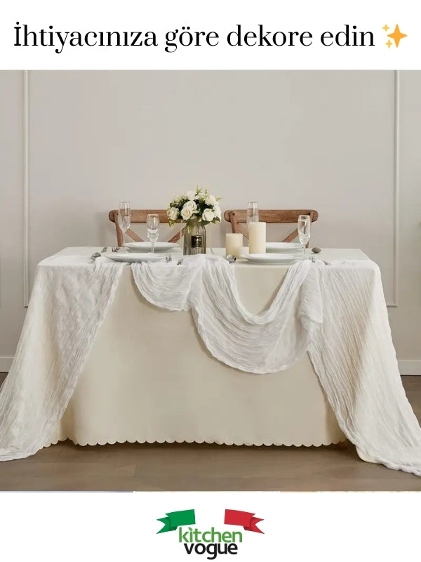 %100 Pamuklu Bohem Masa Örtüsü Dekoratif Runner Beyaz